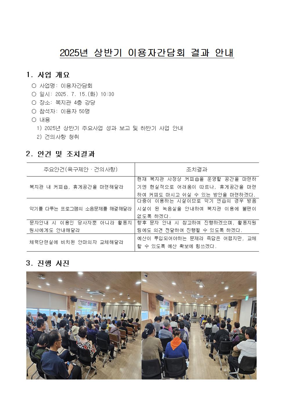 2025³â »ó¹Ý±â ÀÌ¿ëÀÚ°£´ãȸ °á°ú ¾È³»